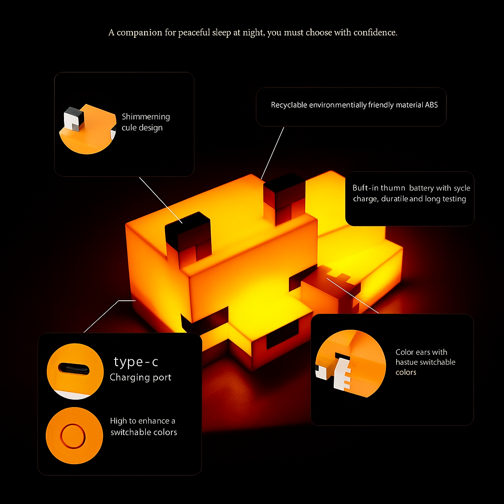 The fox lamp is so cute. It gives a soft orange glow that makes my room feel super cozy.